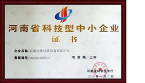 2020年9月9日——河南大張過濾設(shè)備有限公司榮獲“高新技術(shù)企業(yè)”證書